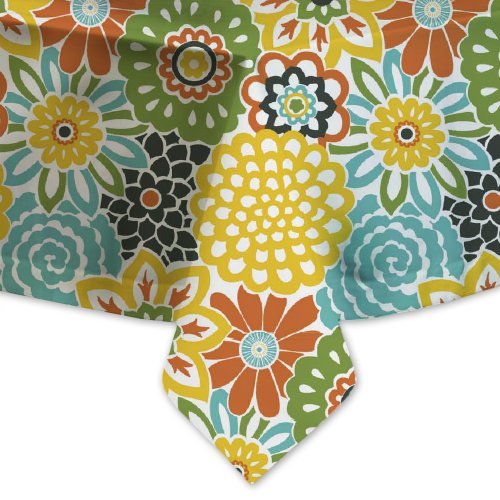 Waverly Button Blooms Confetti PEVA Tablecloth features a floral pattern in fun colors. Colors include green, orange, blue, yellow, black, and white. Made from PEVA - this earth friendly tablecloth is PVC/chlorine free, while still giving you the benefits of traditional vinyl or plastic. Flannel backing provides skid/slip resistance and makes for a quieter dining experience. Waverly compliments every mood & lifestyle, allowing you to choose from traditional, transitional and contemporary looks all in patterns that are sure to spice up your home and table. Read more...
